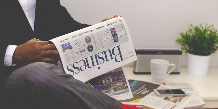 Business man reading newspaper